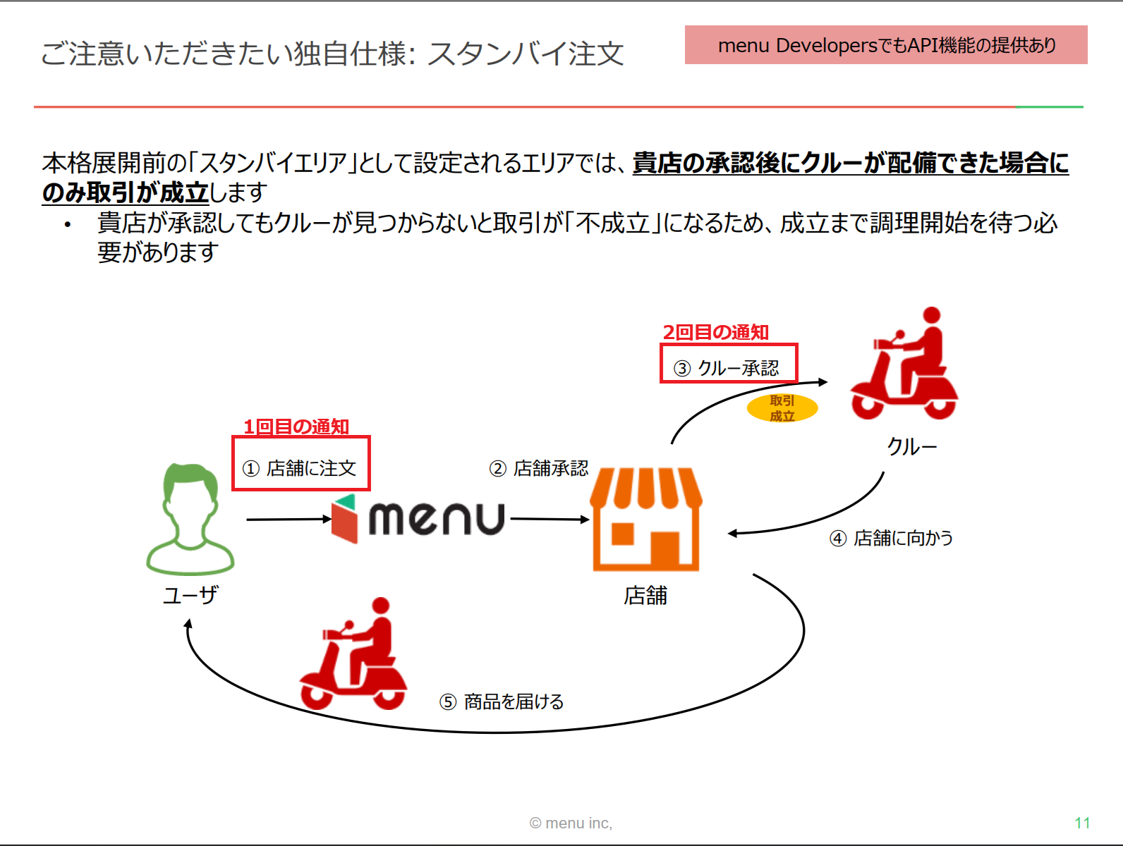 ▼menuのスタンバイエリアでの注文受注フロー